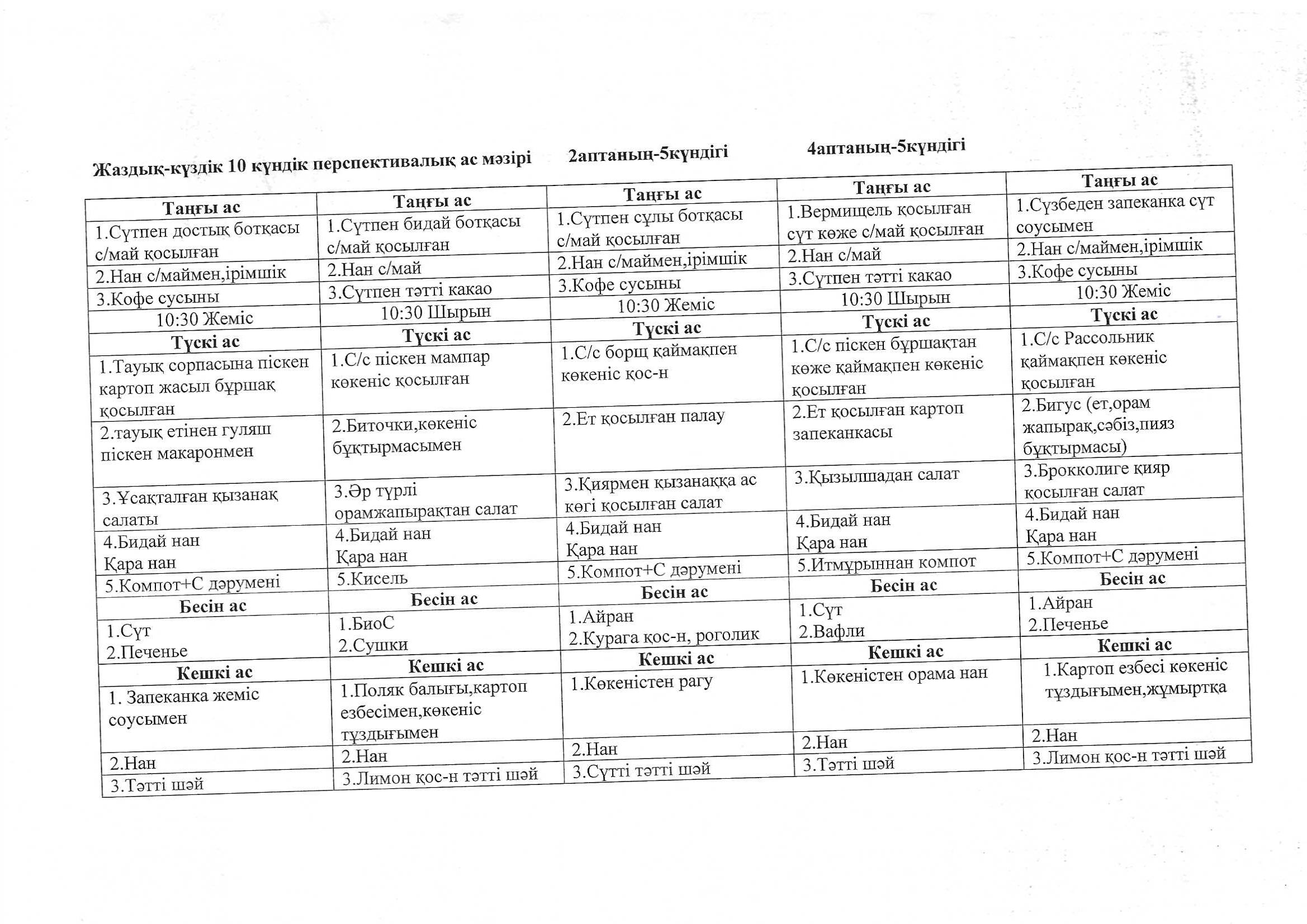 » » Жаздық-күздік 10 күндік перспективалық ас мәзірі 2024-2025 оқу жылы
